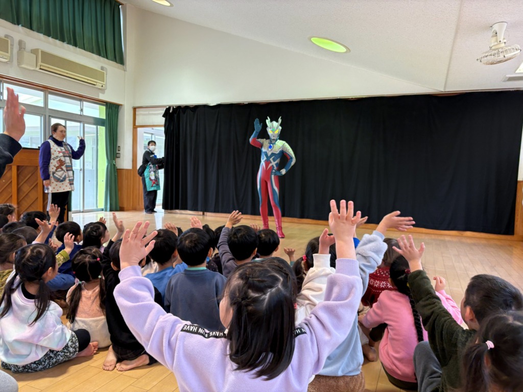 「ウルトラマン基金」では、令和7年台風第22号、第23号で被災した八丈島(東京都八丈町)の子どもたちを応援するため、2026年2月19日(木)から20日(金)の2日間、地域の保育園3か所をウルトラマンゼロとともに訪問しました。