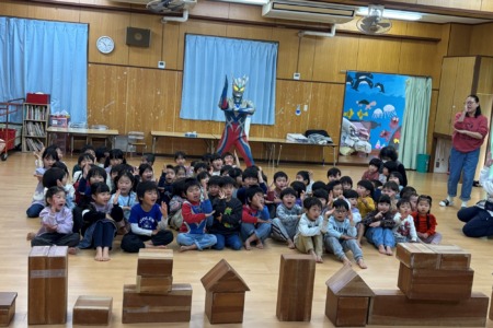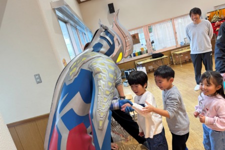 台風の影響により地域全体が大きな影響を受ける中で実現した今回の訪問に、保育園にいる子どもたちは大歓声でウルトラマンゼロを迎えてくれました。園内では体を動かすゲームや、写真撮影、ハイタッチなどを約30分間の交流が行われ、園内は笑顔と元気一杯の声に包まれました。